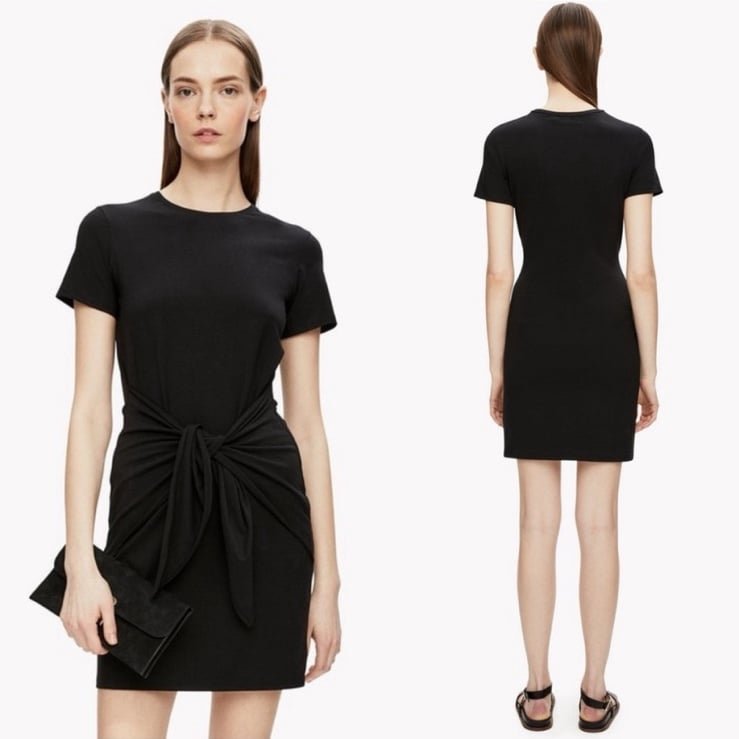 210 Theory Dakui Mini Knotted T-Shirt Dress in Black size M