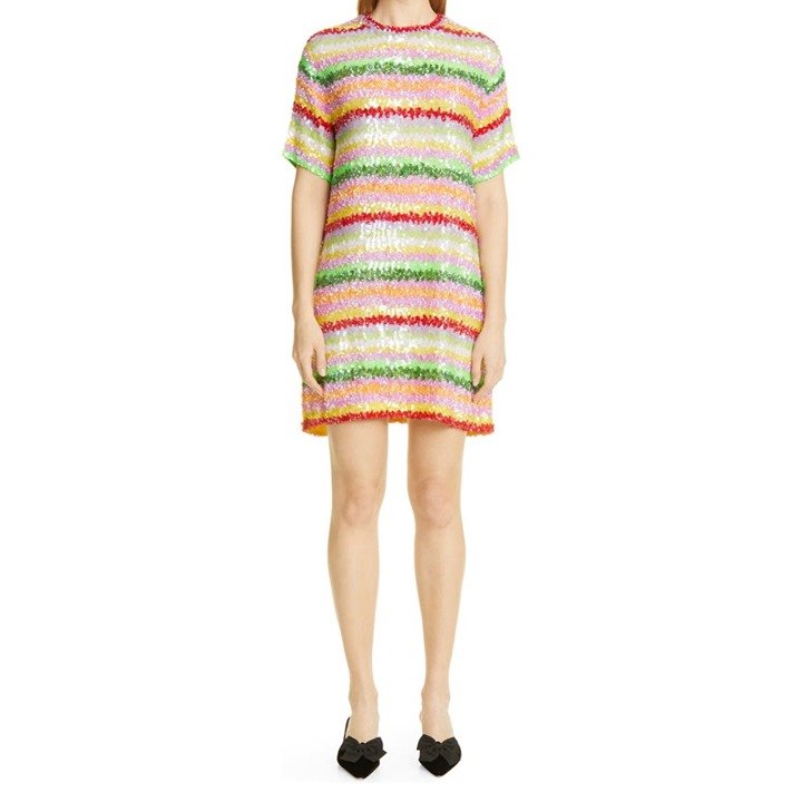 ASHISH STRIPED SEQUINS T-SHIRT DRESS SIZE S
