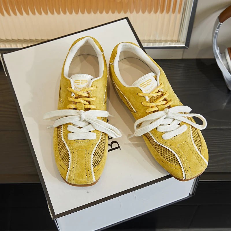 AUTUSPIN Women’s Flats Shoes Summer Fashion Bonded Leather Ladies Training Sports Sneakers Female Suede Leather Footwear Woman