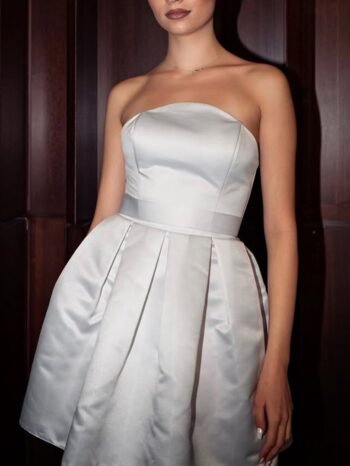 Big Bow Square Satin Ball Gown Mini Prom Dress – White