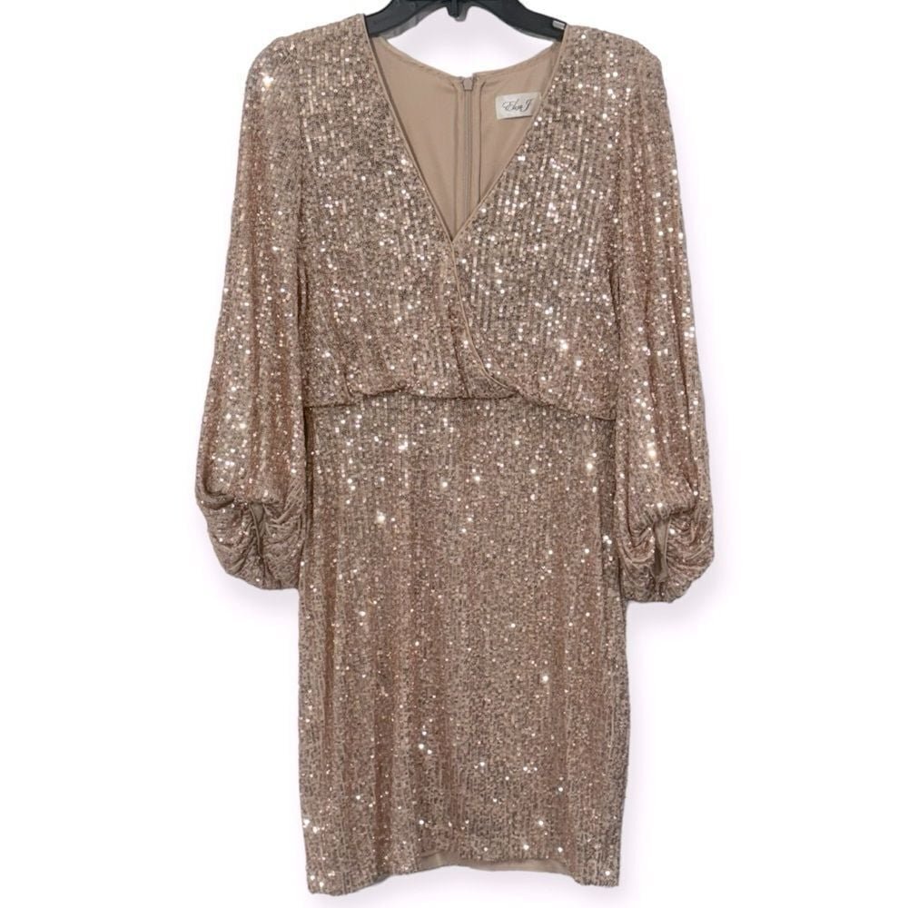 Eliza J Women’s Sequined Rose Gold Long Sleeve Dress Size 6