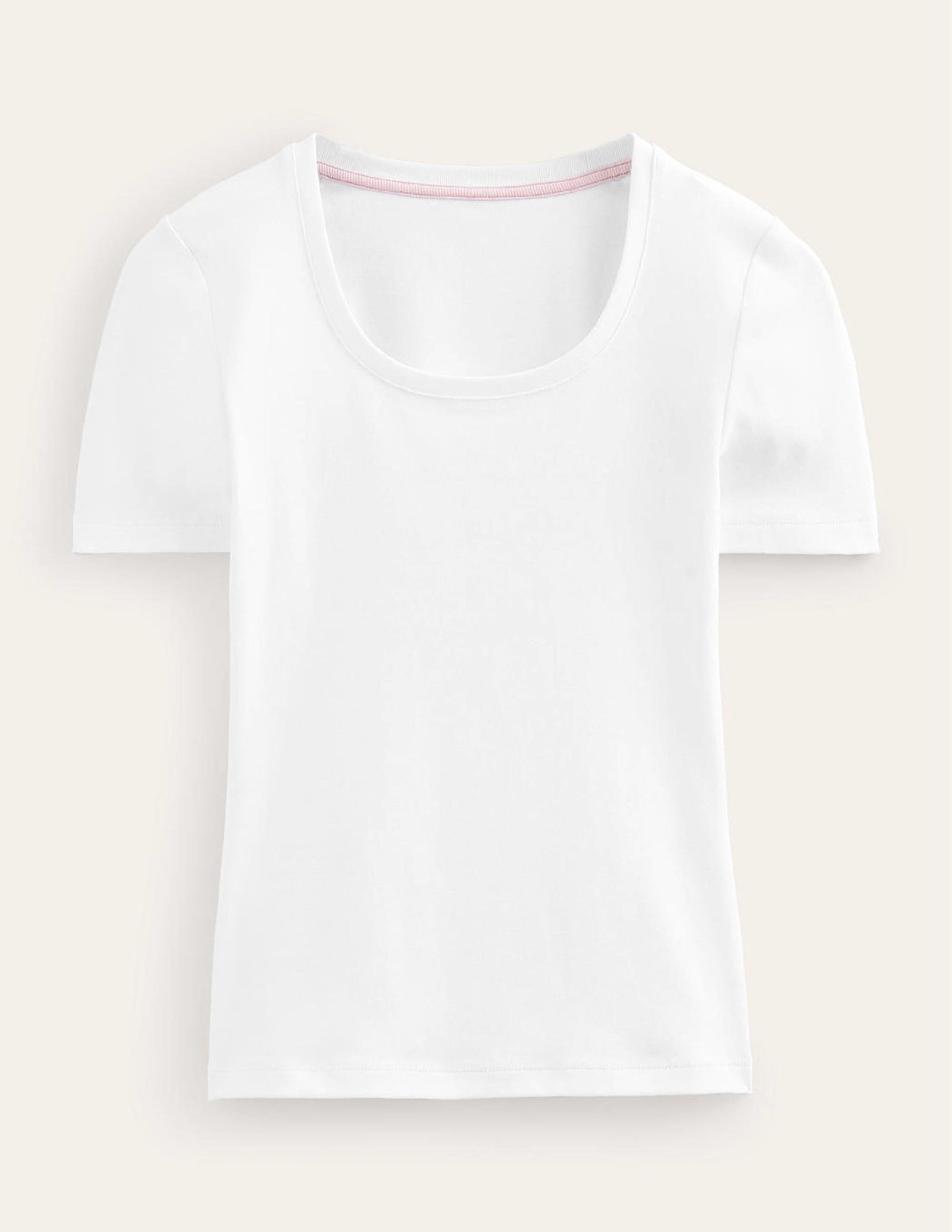 Cut to sit close to the body with a soft, ribbed finish, this scoop-neck tee is an everyday must-have.