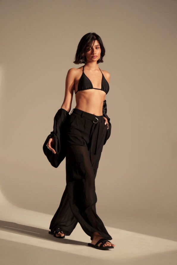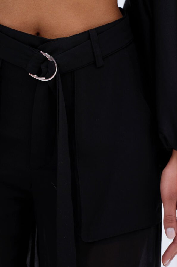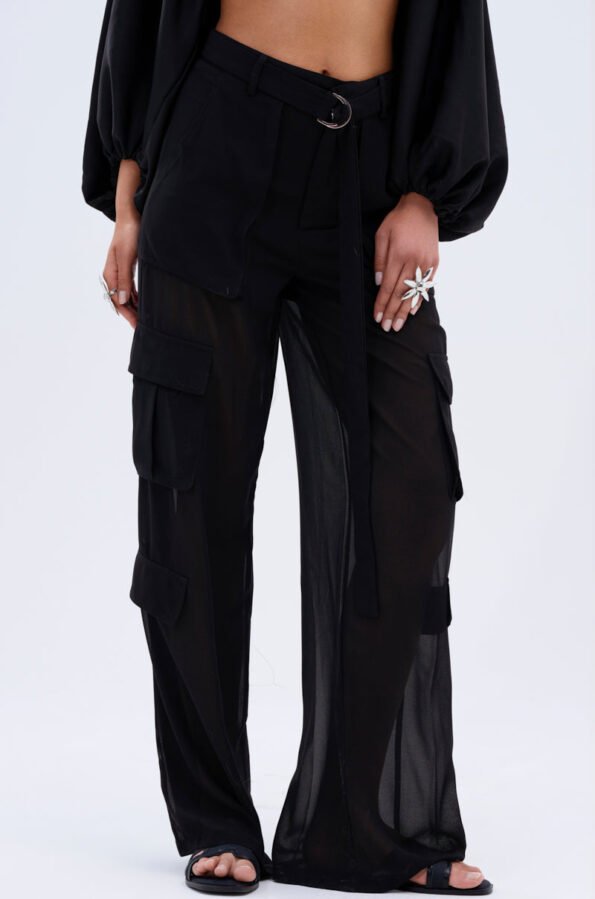 Get a taste of the good life in The AKIRA Label Fame Is Real Sheer Trouser. Crafted from an airy, unlined fabric, these wide-leg trousers feature a high-rise fit, functional belt loops with a coordinating buckled belt, dual waist pockets, dual rear pockets, and additional cargo flap pockets lining both legs. Complete with a standard zipper with dual hook-and-bar fastenings and a relaxed, wide-leg silhouette. Try styling with a bralette, a bolero, and strappy stilettos for a finished look.