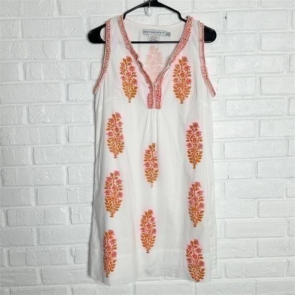 Gretchen Scott Designs White And Coral Floral Summer Tank Dress Cotton sz Small