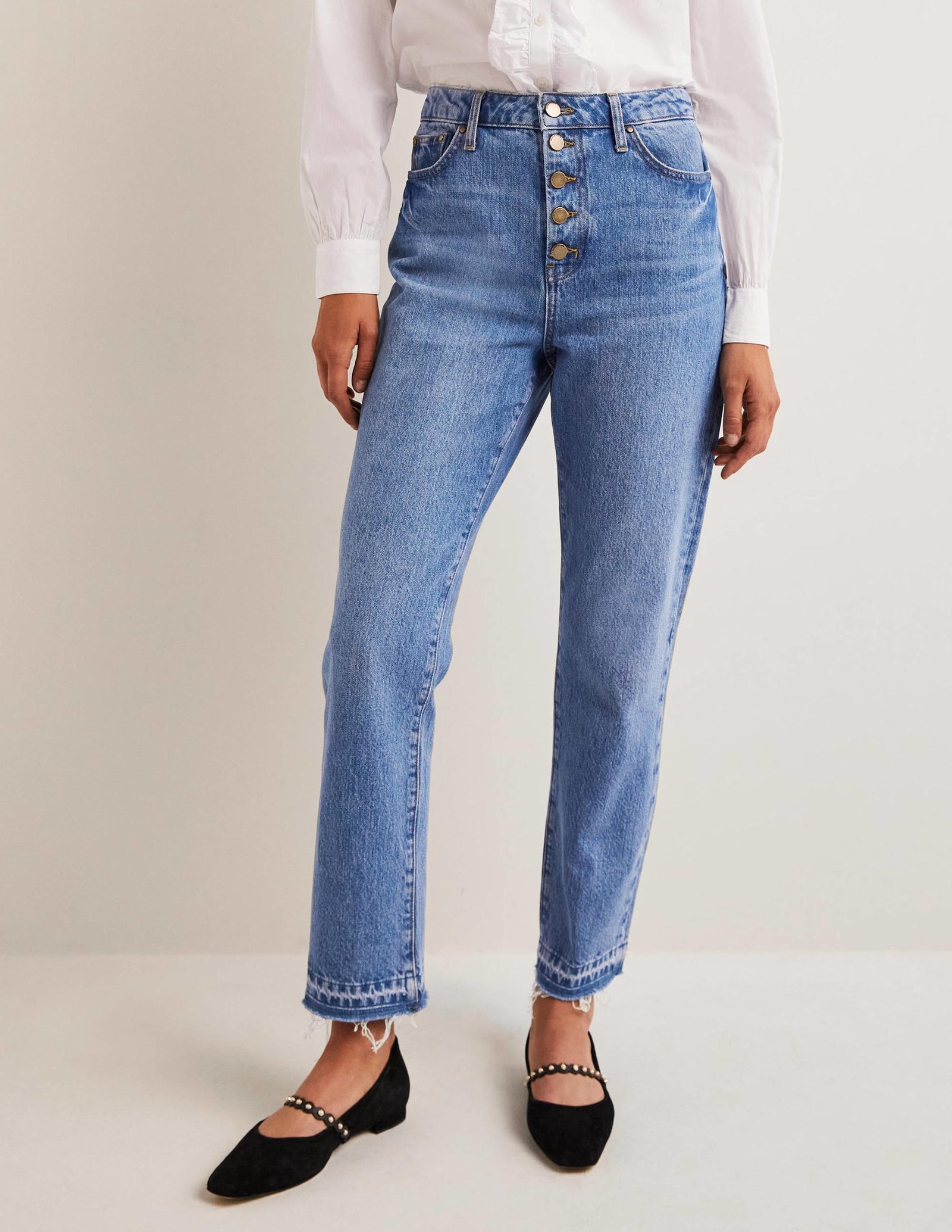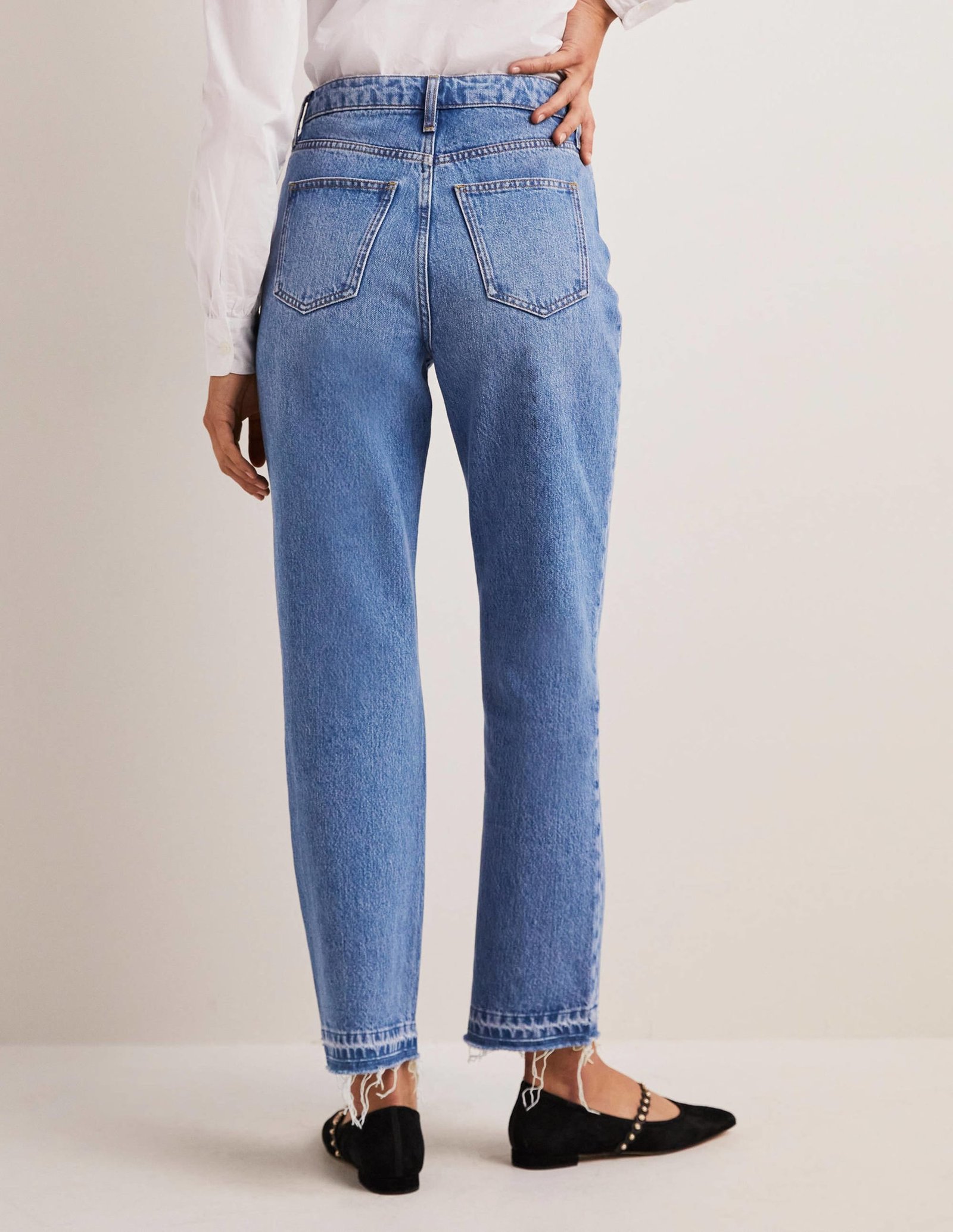 French-tucking a blouse, sporting a waist-skimming crop – high rise jeans are just so wearable. They’re also properly flattering.