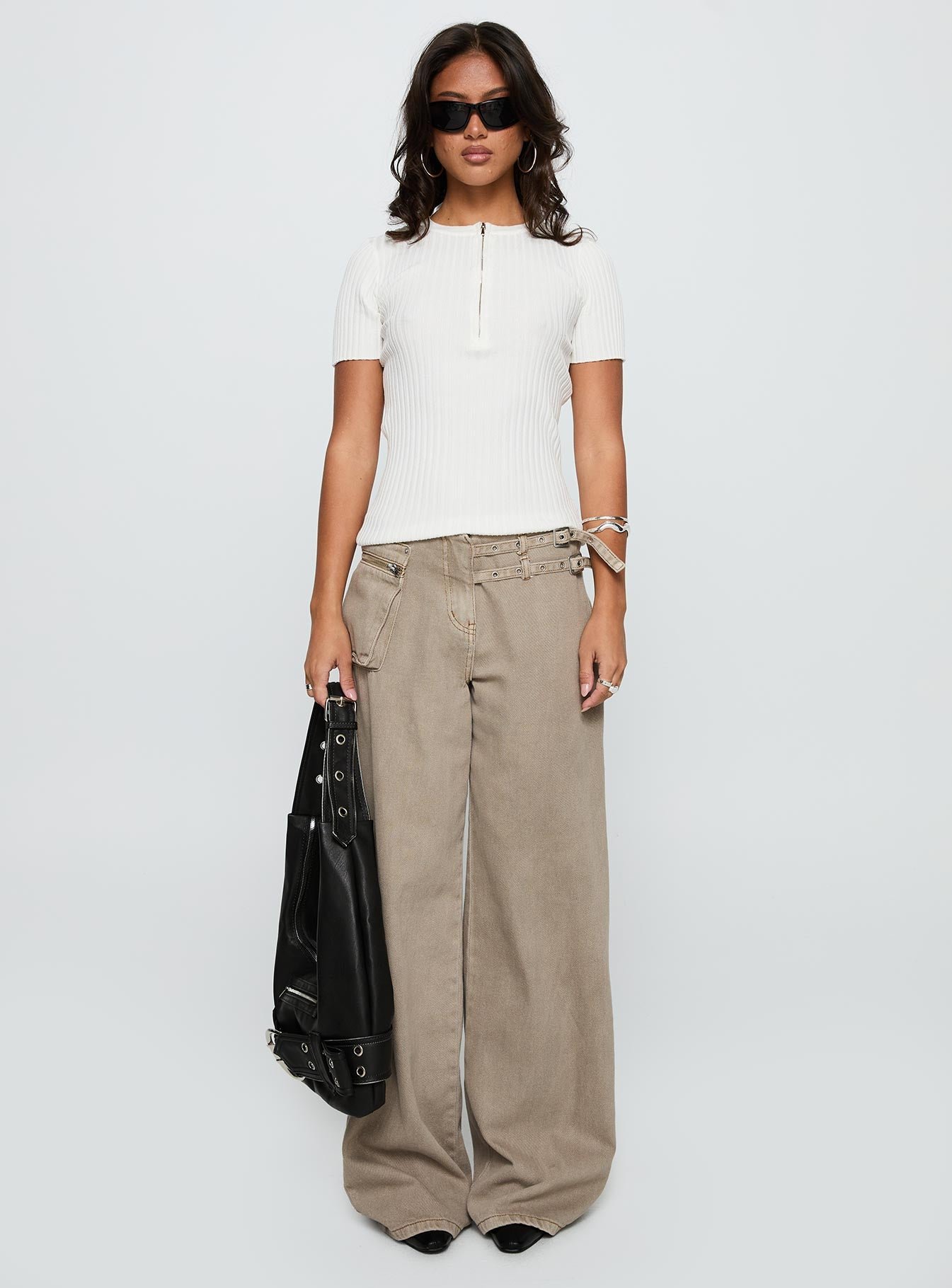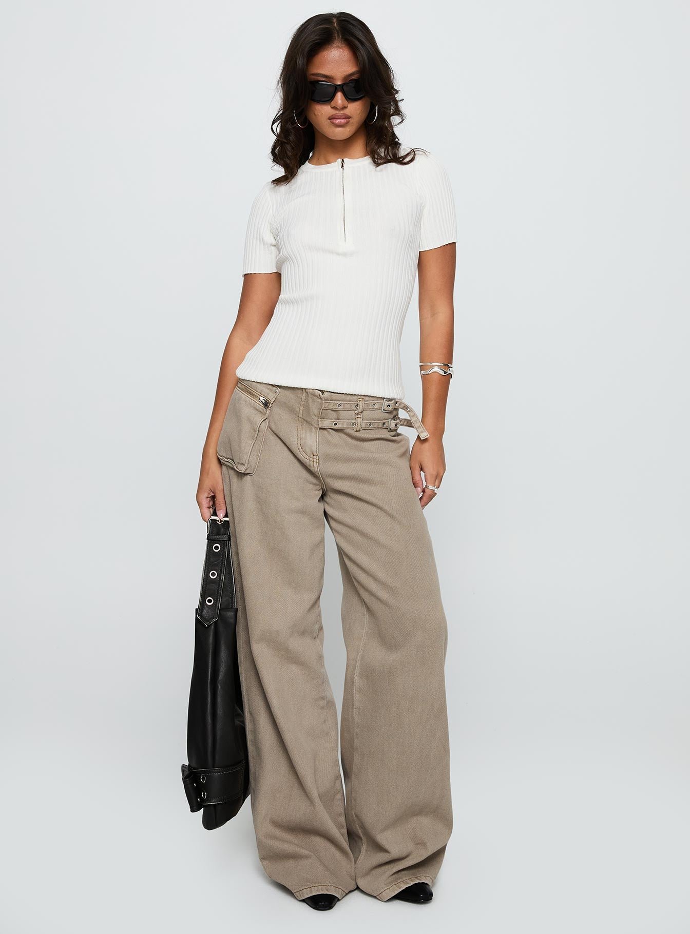 - Knit material, round neckline, silver-toned hardware, cap sleeves