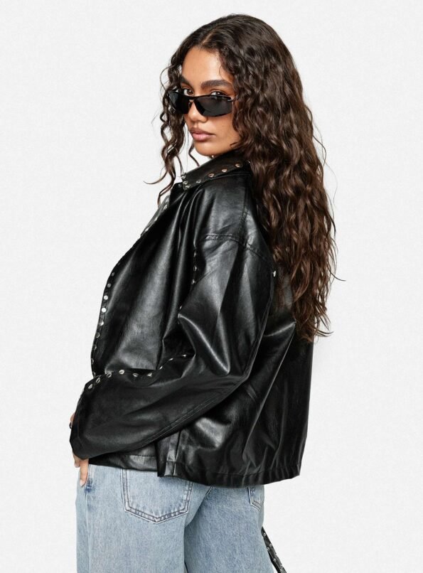 Kaeden Faux Leather Stud Detail Biker Jacket Black
