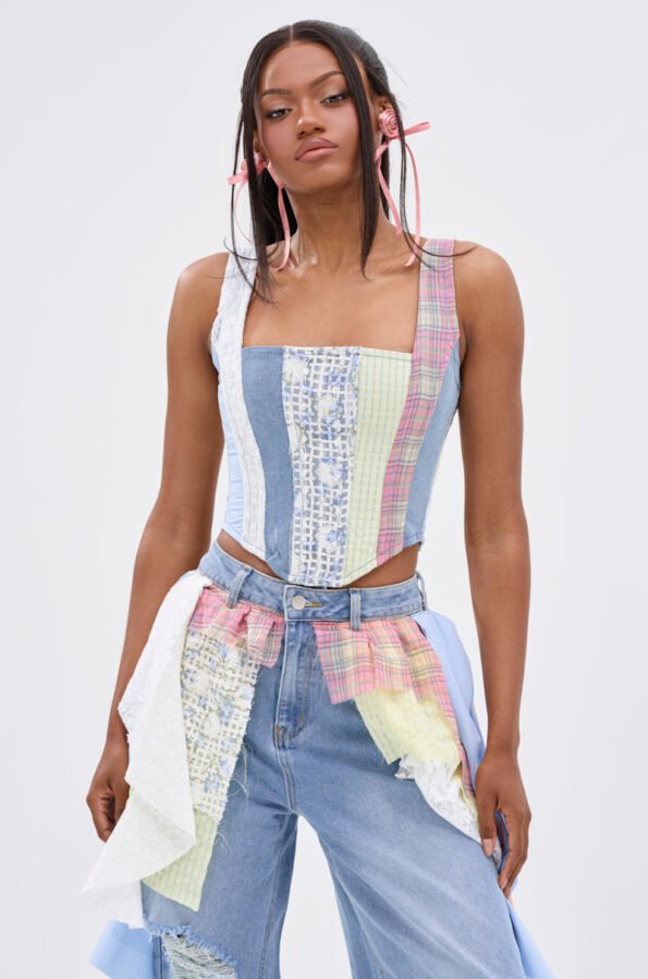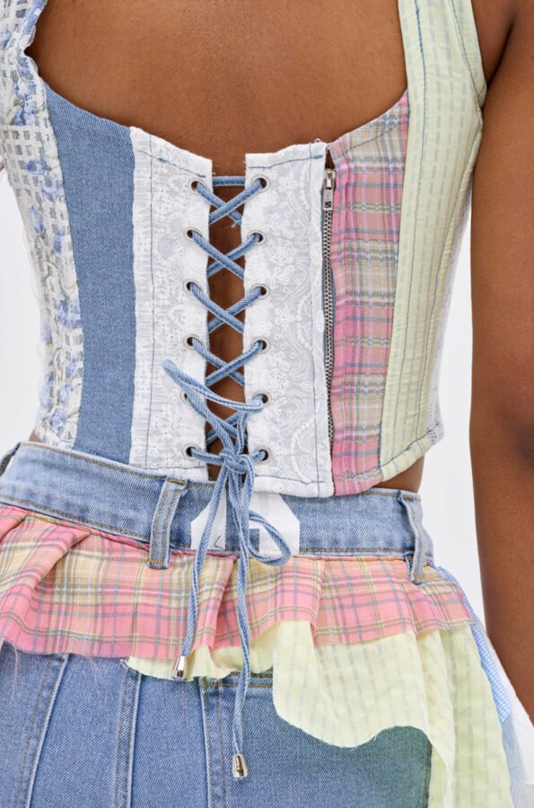 LET THE FUN BEGIN MIXED PLAID CORSET TOP