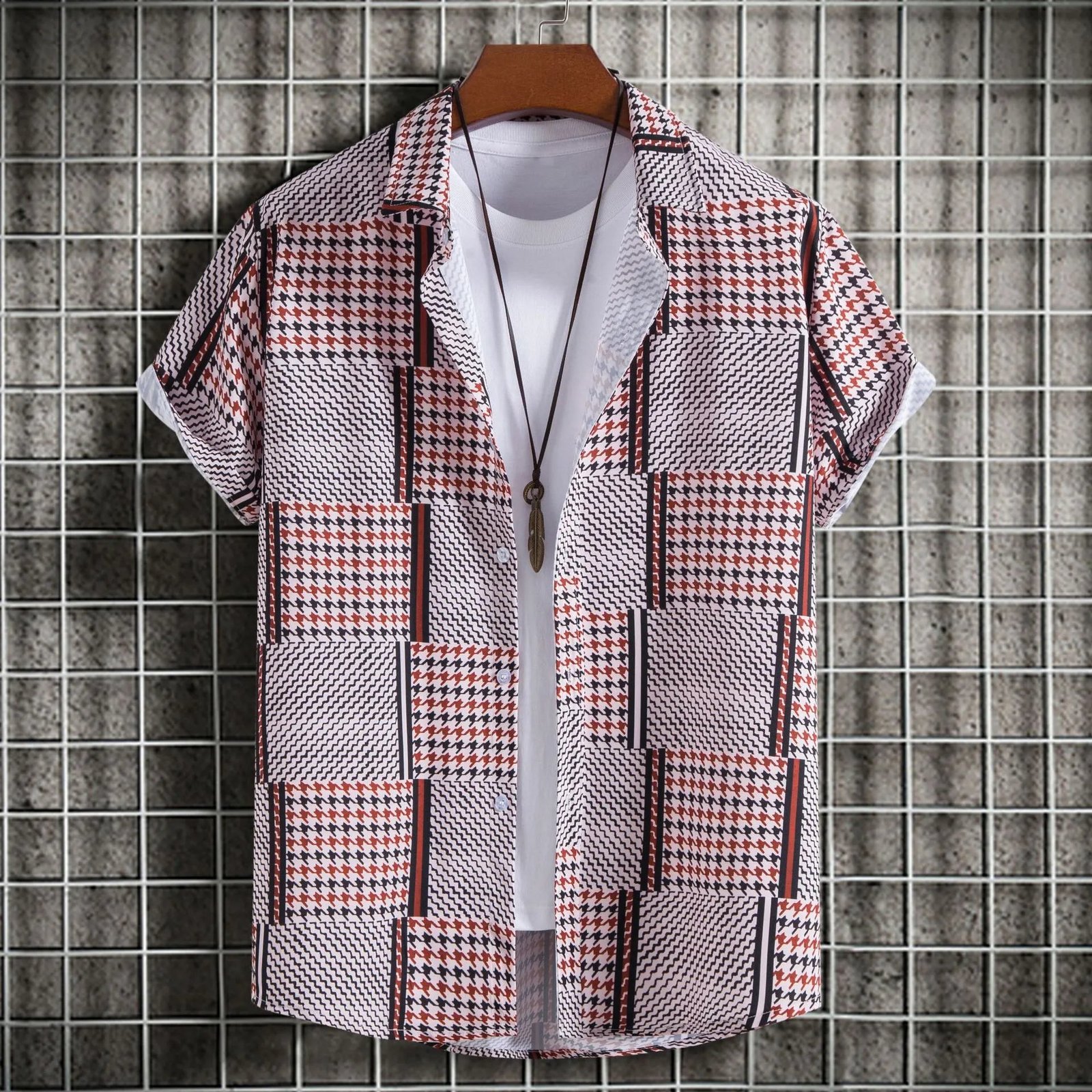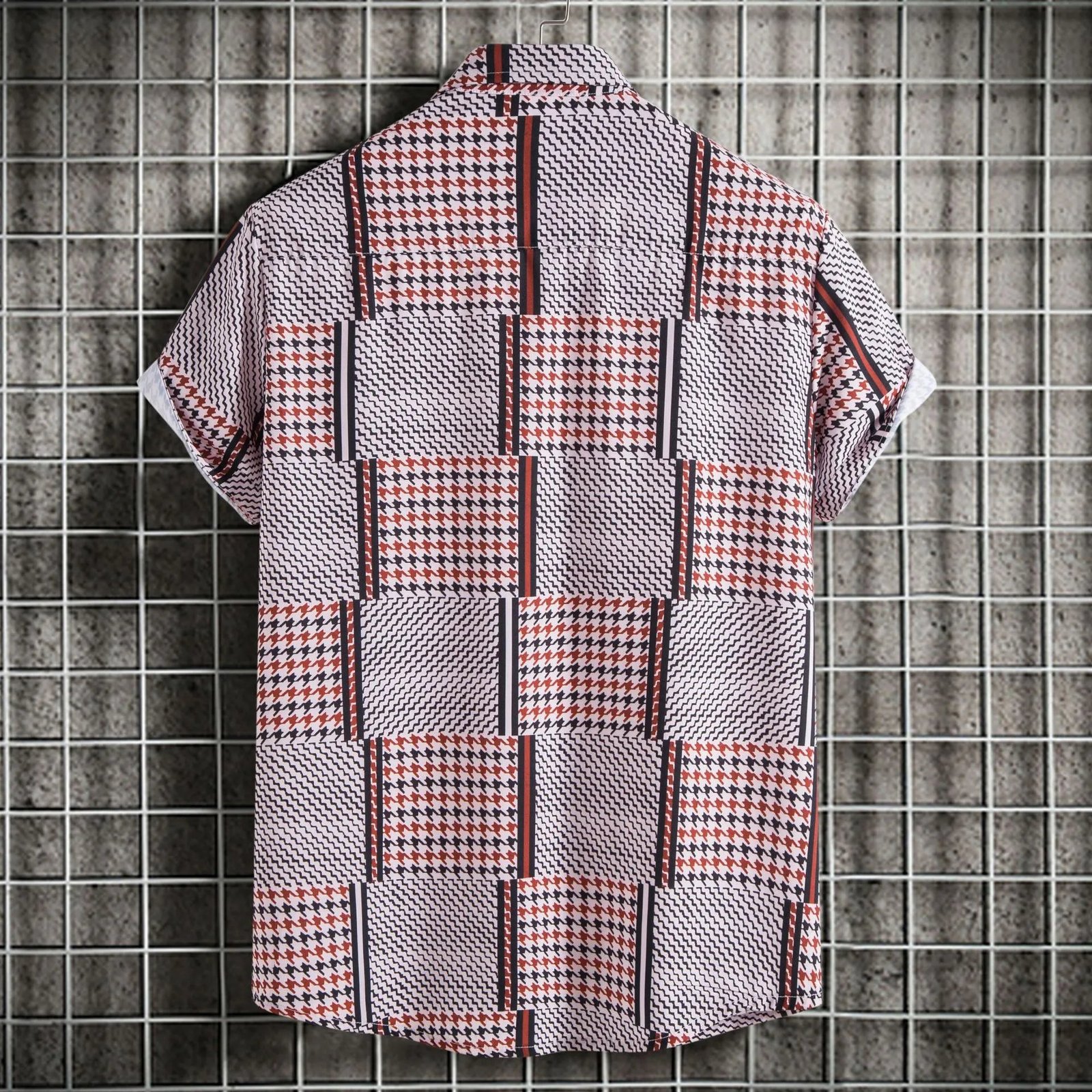 Men’s Plus Size Patchwork Plaid Short Sleeve Casual Shirt