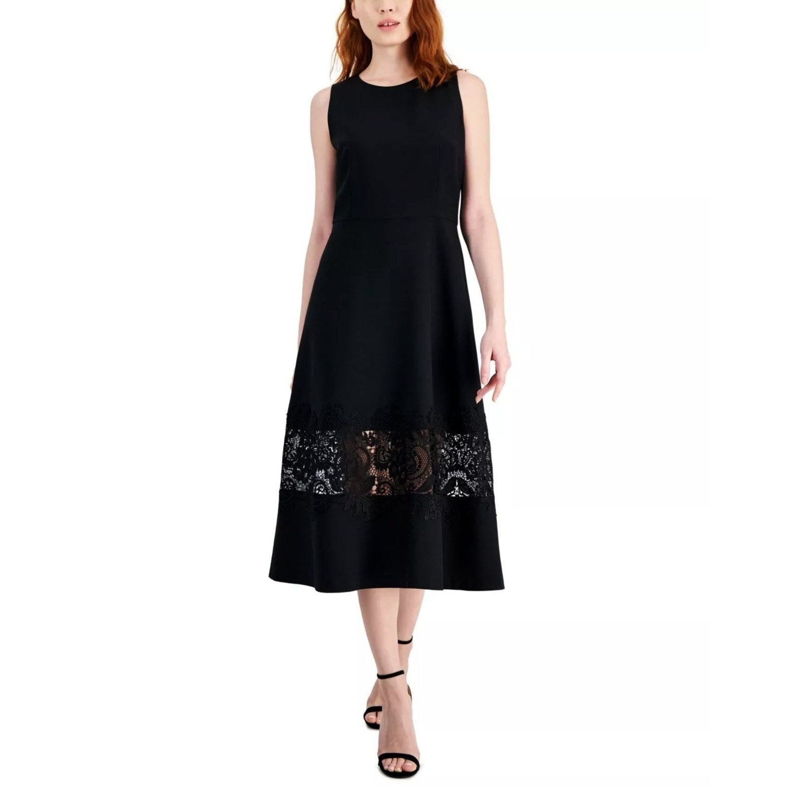 Anne Klein Women’s Lace Hem Fit And Flare Midi Dress