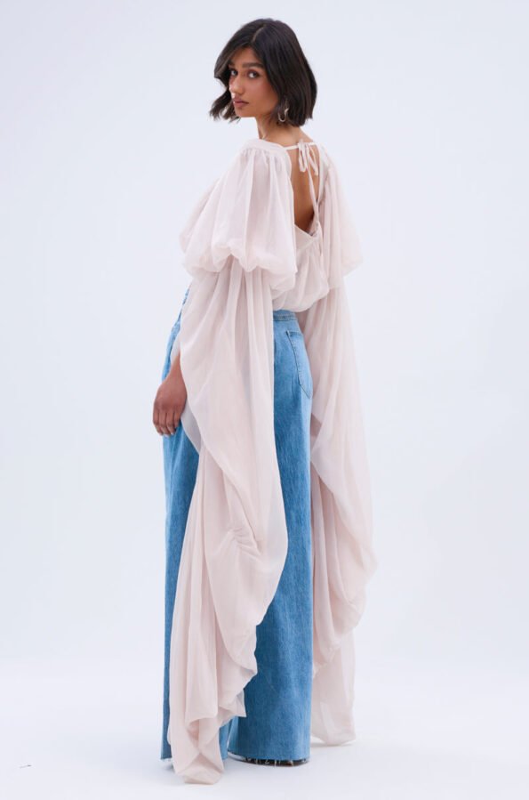 Float through your day in The AKIRA Label Slouchy Square Neck Long Sleeve Blouse. This romantic and breezy piece is crafted from a whisper-light, sheer fabric and features a soft square neckline, gathered bodice, and a dramatically draped high-low hem, lending relaxed grandeur to any outfit. Billowy sleeves and a delicate neck tie enhance its ethereal charm, making it ideal for day or evening wear.