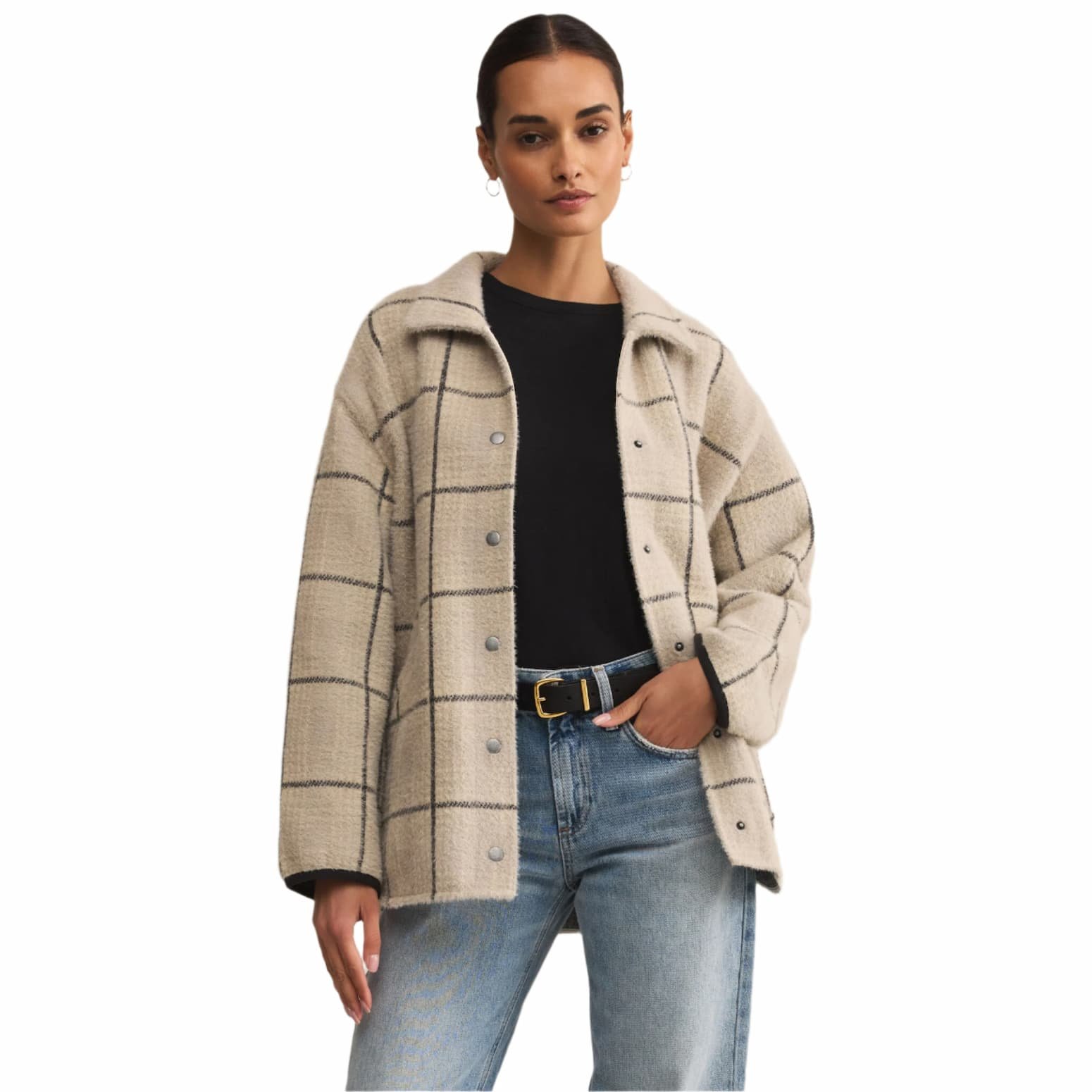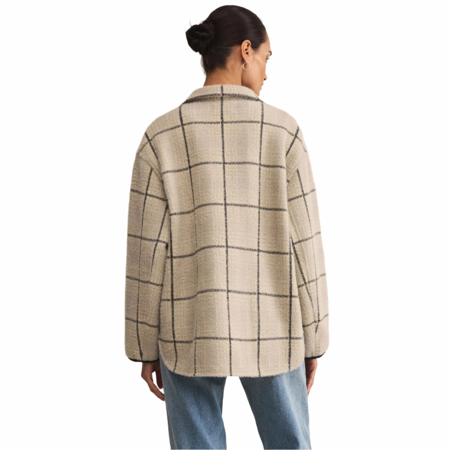 Elevate your wardrobe with the Z Supply Women’s Bronx Plaid Jacket. The collared neckline and long sleeves provide warmth and sophistication, while the button front and welt pockets offer practicality. The heavy soft wash and oversized fit add comfort and style. Made from a midweight sweater knit, this jacket will become a staple in your collection. Length from shoulder is 28″.