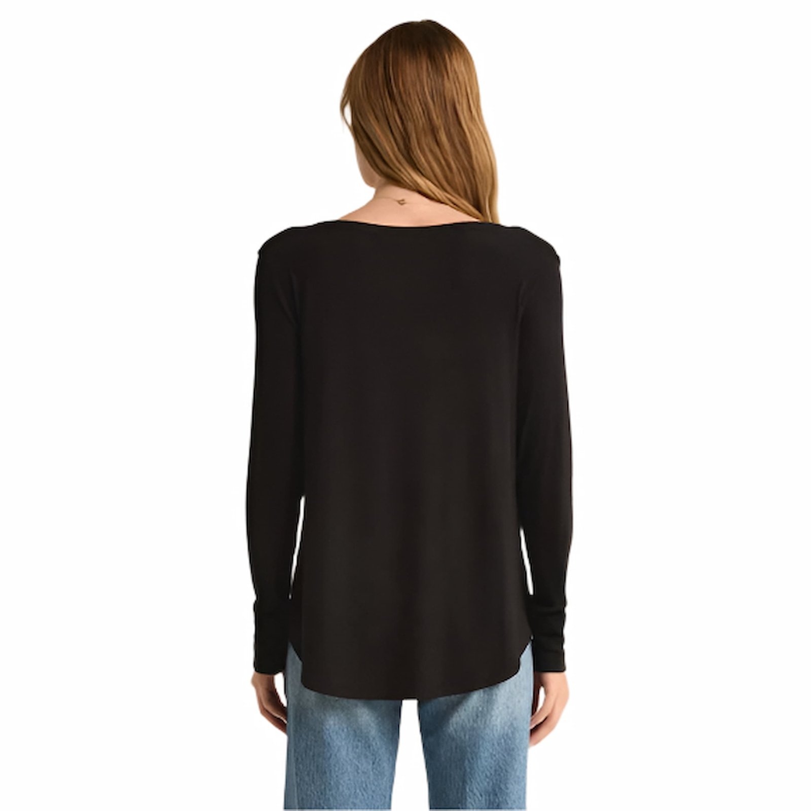 Introducing the Z Supply Elton Rib Black Top – a timeless and versatile essential for any wardrobe.