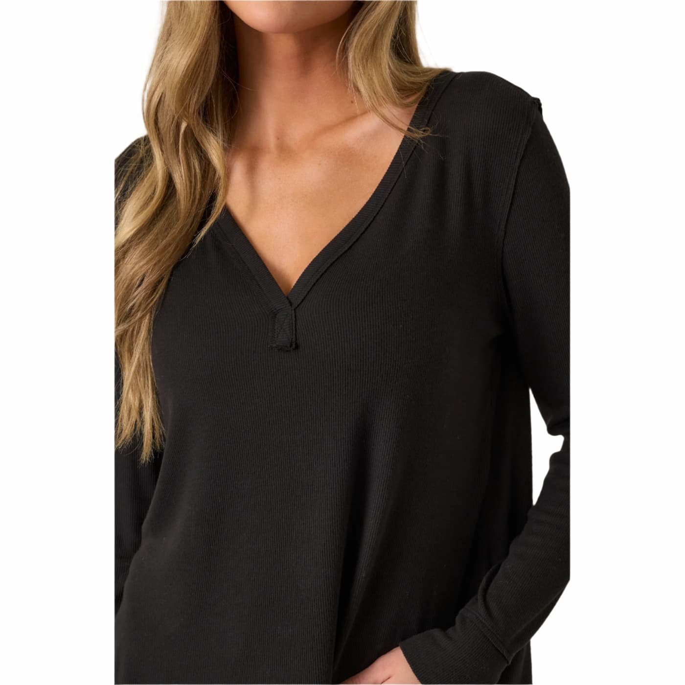 The long sleeves offer warmth and coverage, making this top a perfect transitional piece for layering in cooler months or wearing on its own when the weather is mild. Whether you’re heading to brunch, working from home, or enjoying a relaxed evening, the Elton Rib Black Top is your go-to choice for effortless sophistication. Don’t miss out on adding this versatile staple to your collection—it’s a piece you’ll reach for time and time again!