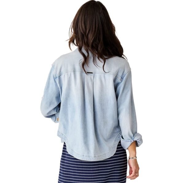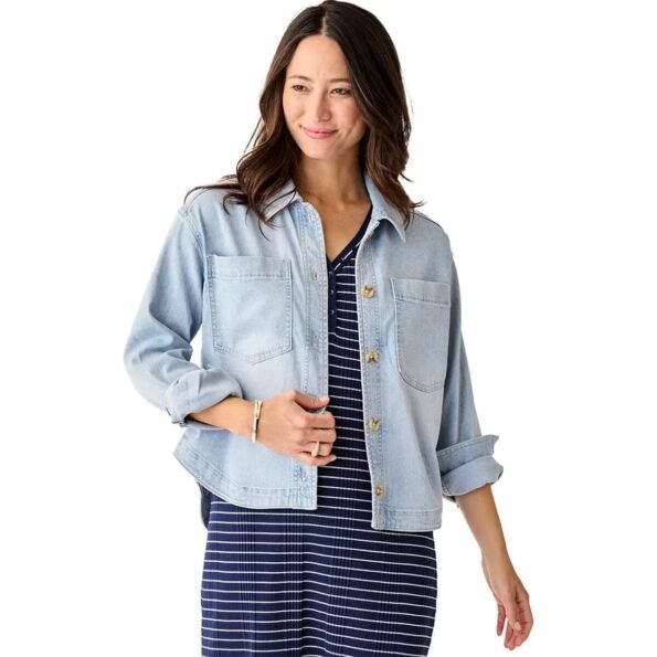 The Carve Designs Women’s Flora Denim Shacket features a shaped shirttail hem, oversized chest pockets, and a lightweight denim fabric that would make Darwin proud. This versatile piece can be attributed to the mother of invention and the necessity for a combination of style and functionality.